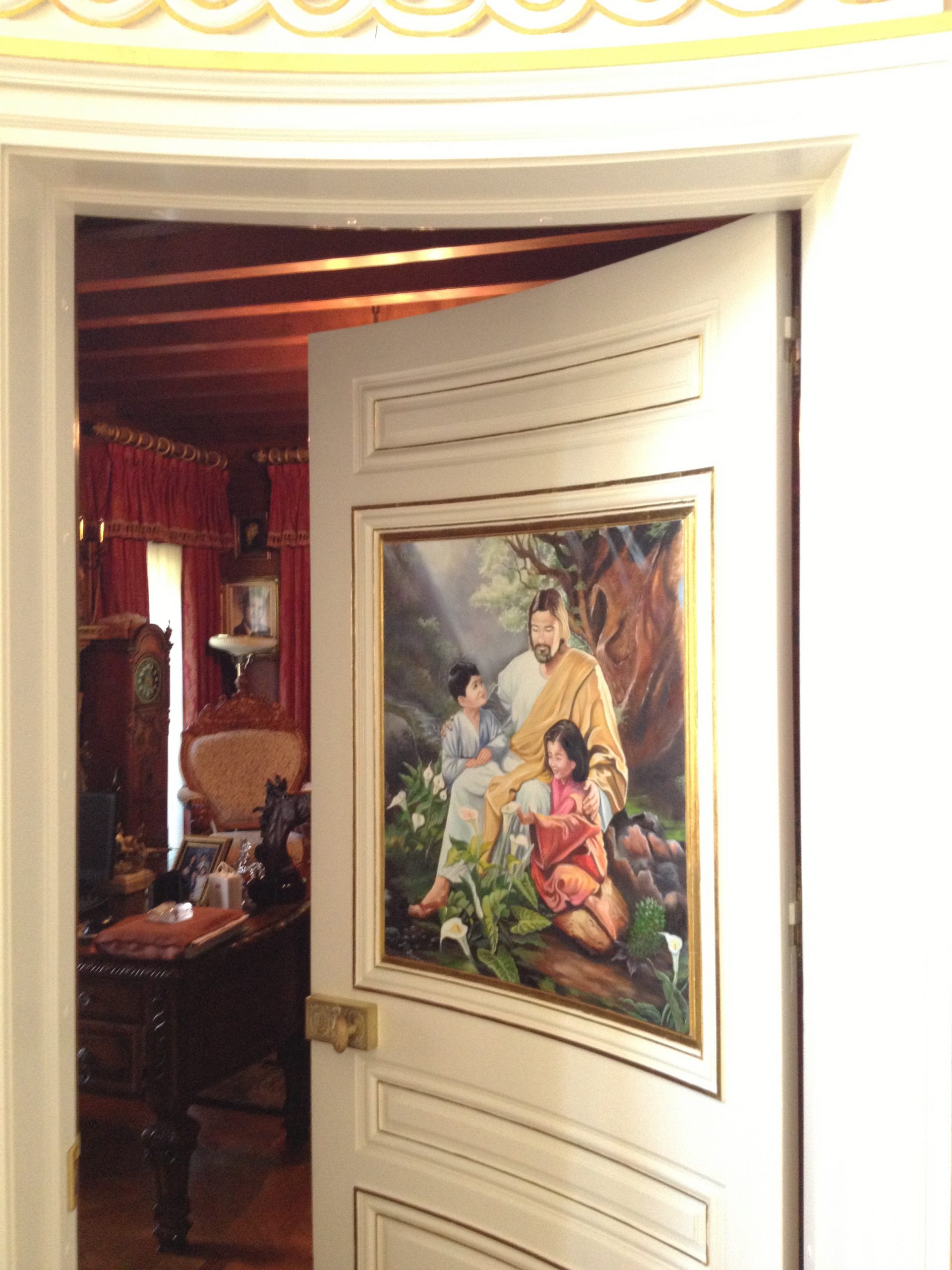 The opulent interior of the River Forest estate contains nine bedrooms, including six master suites one with a black onyx bathtub and gold fixtures, accessed via a dramatic mahogany spiral staircase in a 2½-story foyer. The monumental 25 x 40-foot living room has restored mahogany wall panels, a cherry parquet floor, floor-to-ceiling windows, twin crystal chandeliers and a pipe organ. A modern kitchen and breakfast room are connected to the large family room.