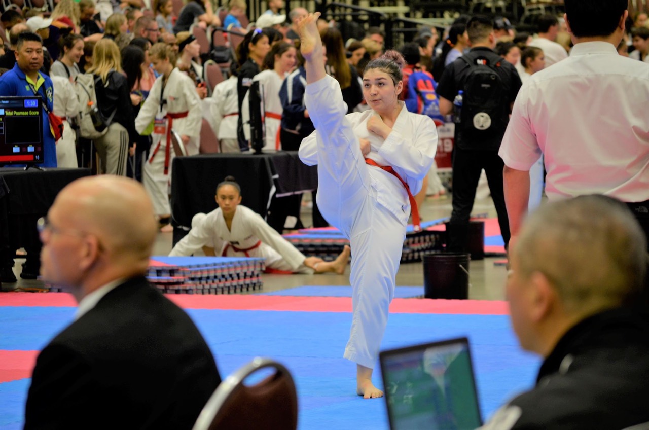 Ramos is a member of Flying V’s competition team, along with her daughters Ariana (13) and Sofia (11). Although he’s not competing yet, Ramos’ 8-year-old son, Freddy, has an orange belt.
